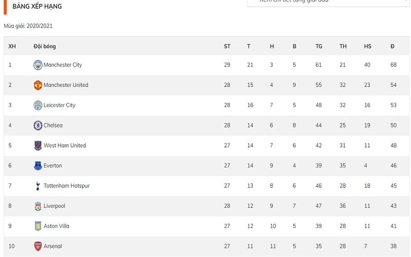 Ngoài ra, tính năng lịch thi đấu và bảng xếp hạng cũng được trình bày rõ ràng, giúp người xem dễ dàng theo dõi hành trình của đội bóng mình yêu thích trong suốt mùa giải.